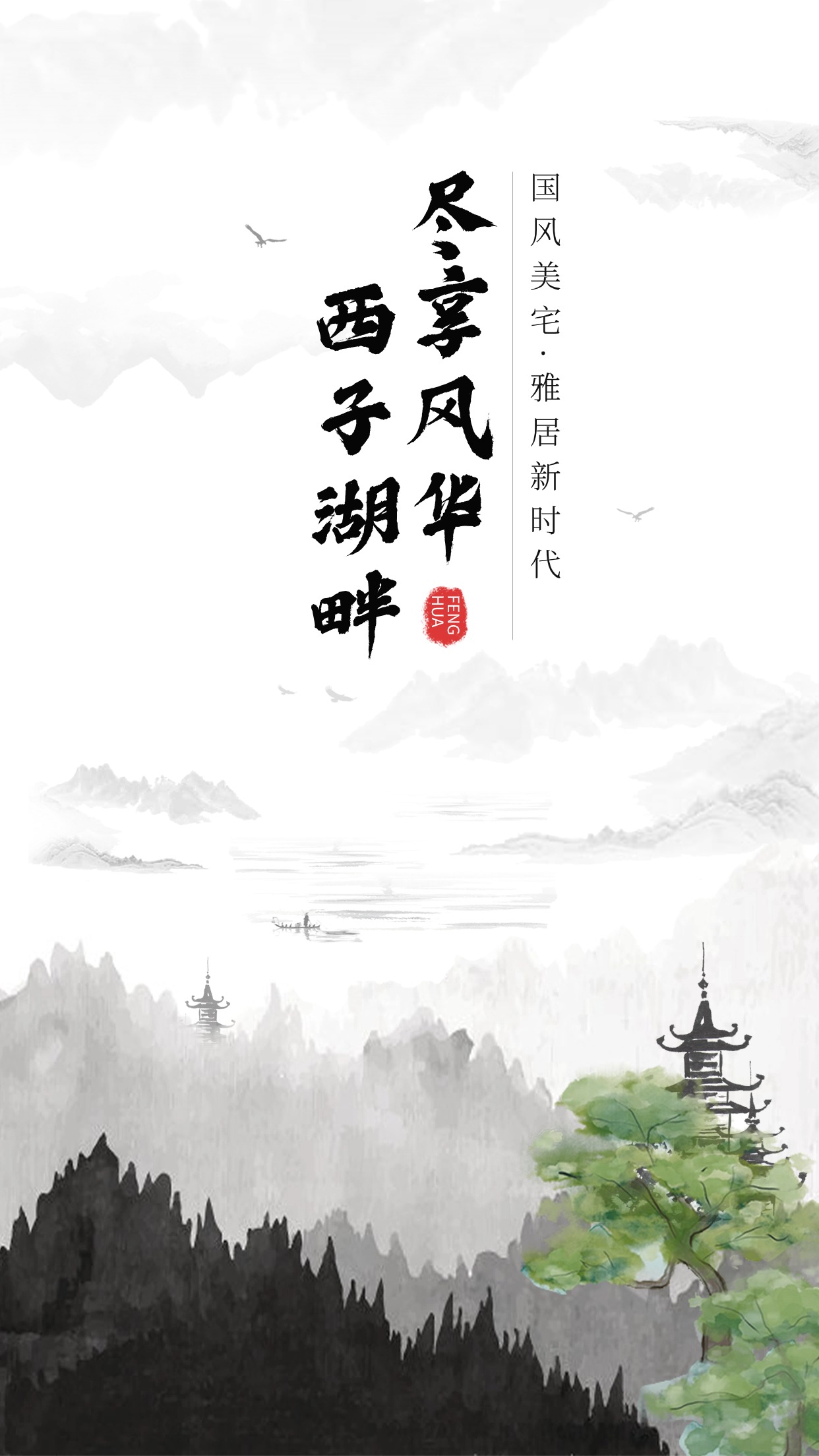 地产楼盘宣传手机中式古风海报